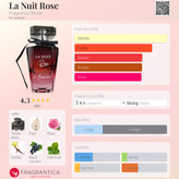 این عطر یک ترکیب کاملاً شبانه و احساسیست که محور اصلی آن رز عمیق و عاشقانه است؛ رزی که نه دخترانهی ساده است و نه تند و خفهکننده، بلکه بالغ، لطیف و کاملاً زنانه طراحی شده.