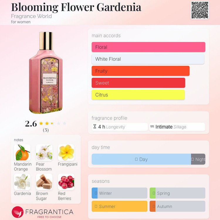بلومینگ فلاور فرگرانس ورد عطریه زنانه و لطیف که حس بهار، تازگی و شادابی رو منتقل میکنه. رایحهای کاملاً گلدار و شیرین ملایم که برای استایل روزمره، محل کار و قرارهای دوستانه یا عاشقانه سبک مناسبه.